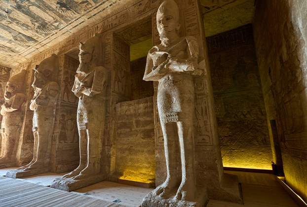 This smaller but equally stunning temple is dedicated to Queen Nefertari, Ramses II’s beloved wife, and the goddess Hathor. The facade features six statues of Ramses II and Nefertari, showcasing the queen’s elevated status.